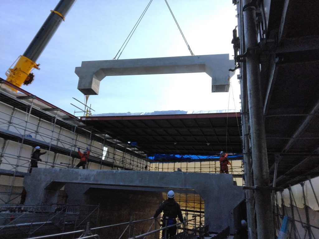 製造は會澤高圧コンクリートのマザー工場である鵡川工場で行われ、同社が開発した自己治癒コンクリート「Basilisk」を採用しました。自己治癒コンクリート「Basilisk」採用をすることによって、ひび割れ発生時に自己修復機能が働き、長期的な維持管理負担の低減に寄与します。また、構造物の長寿命化により補修や更新の周期を延ばすことが可能となり、ライフサイクル全体でのCO₂排出量削減など、脱炭素社会への貢献も期待されています。